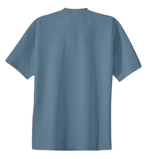 Heavyweight 6.1-ounce, 100% cotton, Shoulder-to-shoulder taping, Coverseamed neck, Double-needle hem, Ash is 99/1 cotton/poly., Athletic Heather is 90/10 cotton/poly.
